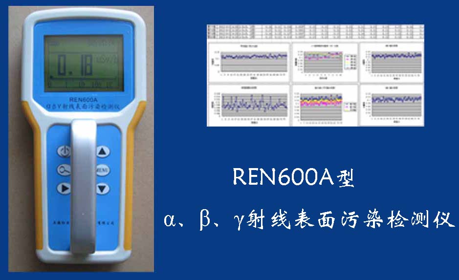 REN600A型α、β、γ射線(xiàn)表面污染檢測(cè)儀即可檢測(cè)α、β、γ射線(xiàn),也能檢測(cè)到X射線(xiàn),它采用高速嵌入式微處器作為數(shù)據(jù)處理單元,點(diǎn)陣式大屏幕LCD液晶顯示,讀數(shù)清晰、操作方便,具有400條超大容量數(shù)據(jù)存儲(chǔ)。儀器采用進(jìn)口的大面積MICA蓋革探測(cè)器,具有較高探測(cè)效率,可進(jìn)行α、β輻射表面污染檢測(cè)和X、γ輻射劑量率的監(jiān)測(cè)。此外通過(guò)配套的RenriCont表面污染管理軟件可將存儲(chǔ)的數(shù)據(jù)讀出后分析。可廣泛用在制藥廠(chǎng)、實(shí)驗(yàn)室、發(fā)電廠(chǎng)、進(jìn)出口商檢、采石場(chǎng)、環(huán)境實(shí)驗(yàn)室、環(huán)境污染調(diào)查、核安全應(yīng)急、緊急狀況營(yíng)救站、金屬處理廠(chǎng)、地下油田、供油管道裝備、醫(yī)院核醫(yī)學(xué)科、同位素實(shí)驗(yàn)室、環(huán)境保護(hù)和警察局等部門(mén)。REN600A型α、β、γ射線(xiàn)表面